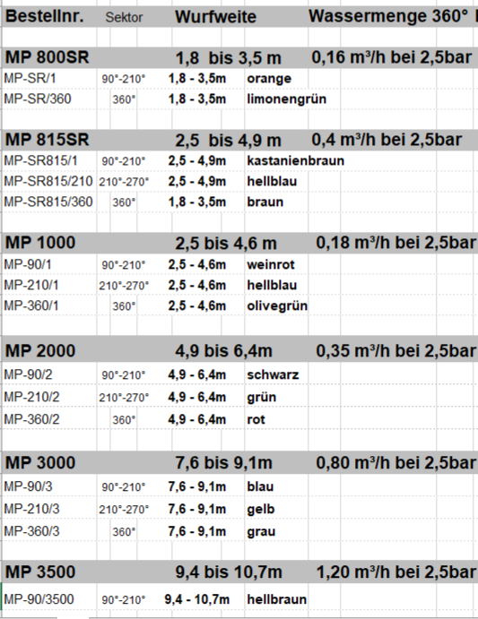 Des weiteren sind Sie widerstandsfähig gegen Wind und haben eine sehr geringe Wasserverbrauchsmenge trotz großer Wurfweiten.