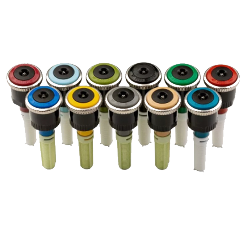 Das Hochwertige Material aus dem die Düsen bestehen, garantiert lange Haltbarkeit und es ist dadurch auch eine preisgünstigere Alternative zu Getrieberegnern. Eine weitere Vereinfachung für den Anwender ist die Farbkodierung der Sprühdüsen, was eine Zuordnung erleichtert.